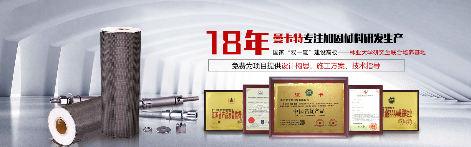 歡迎您來到南京曼卡特科技有限公司,曼卡特主產(chǎn)碳纖維布,植筋膠,預(yù)埋槽道,后擴底機械錨栓,定型化學(xué)錨栓等加固材料